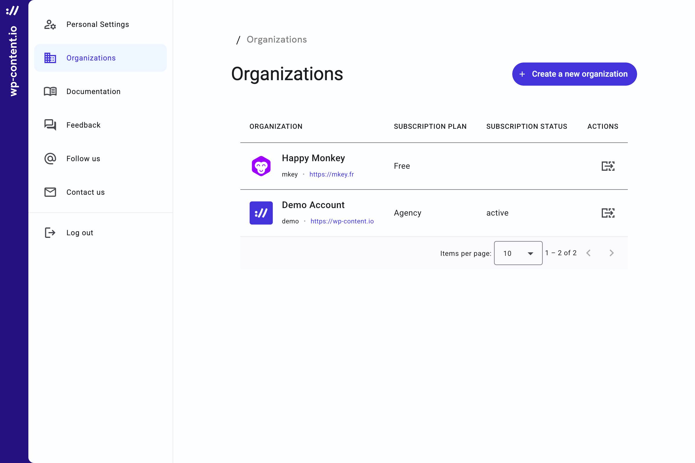 Skip to main contentYou can manage multiple organizations from your account, each acting as a separate workspace for your plugins, themes, collaborators, and API keys.
